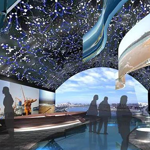 由多塊銀幕組成,通過多臺投影機,采用投影融合技術,創(chuàng)造出超大無縫的逼真畫面。利用電影自身特有的技術優(yōu)勢,使觀眾在高質量的聲畫環(huán)境包圍之中,產生身臨其境的強烈的現(xiàn)場 ……